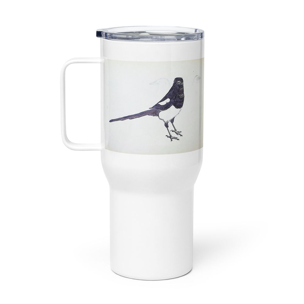 Magpie Study / Pencil Sketches - Travel Mug with Handle
